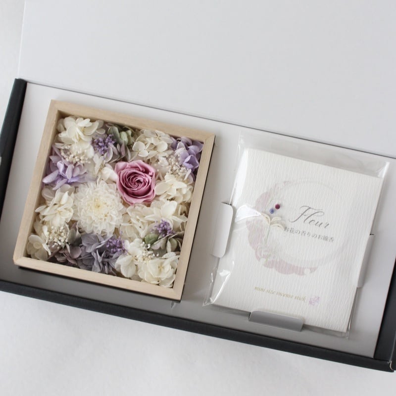 - フルールcubeは桐箱に入った「花」と「香り」をセットにしたものです