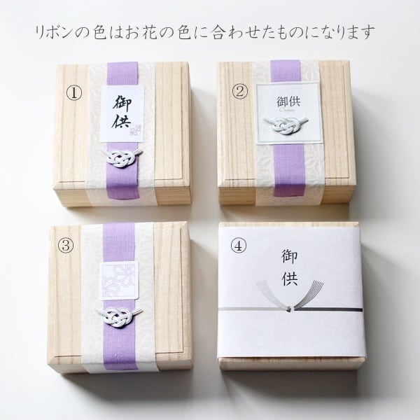 リボンカラーはお花の色に合わせたお色でご用意いたします。