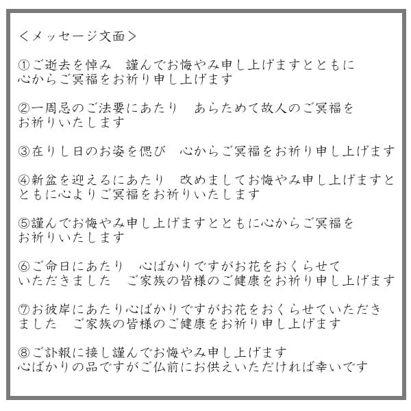 例文以外のメッセージご希望の場合は”オリジナル”を選択し備考欄に文面をご記入ください。