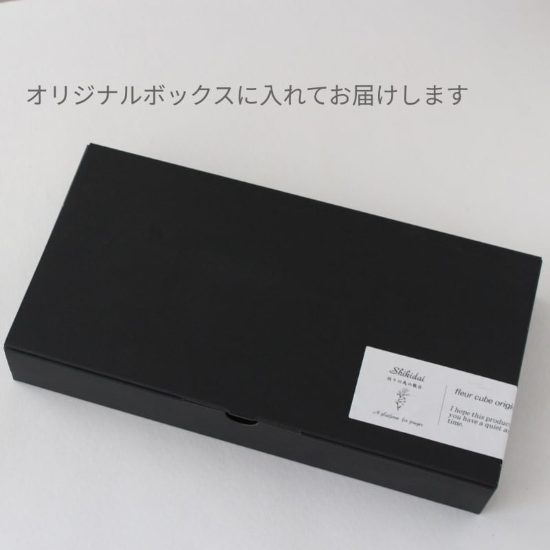 - フルールcubeは桐箱に入った「花」と「香り」をセットにしたものです